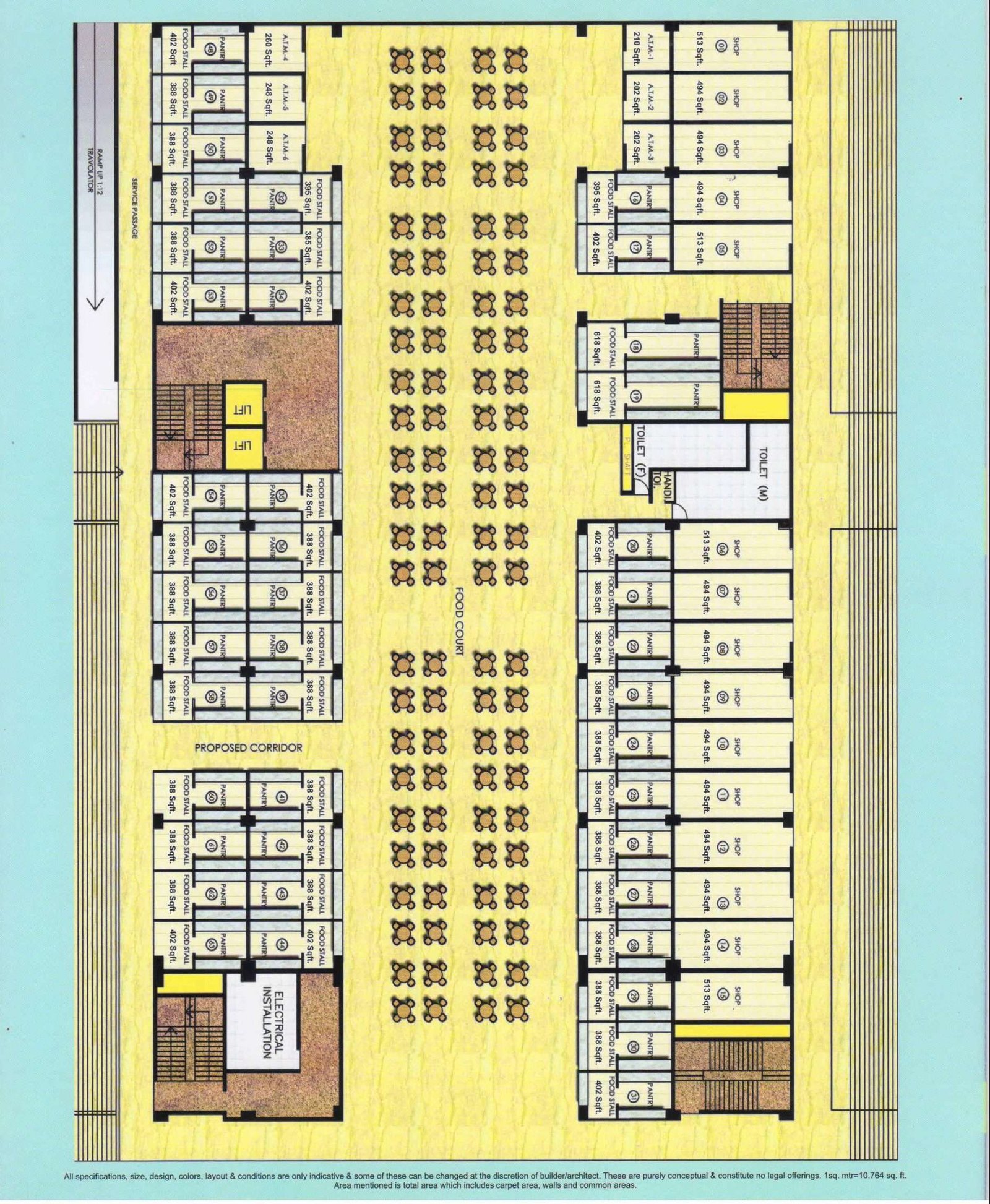 Block A – 388-494 sq ft food court shops at Ground Floor