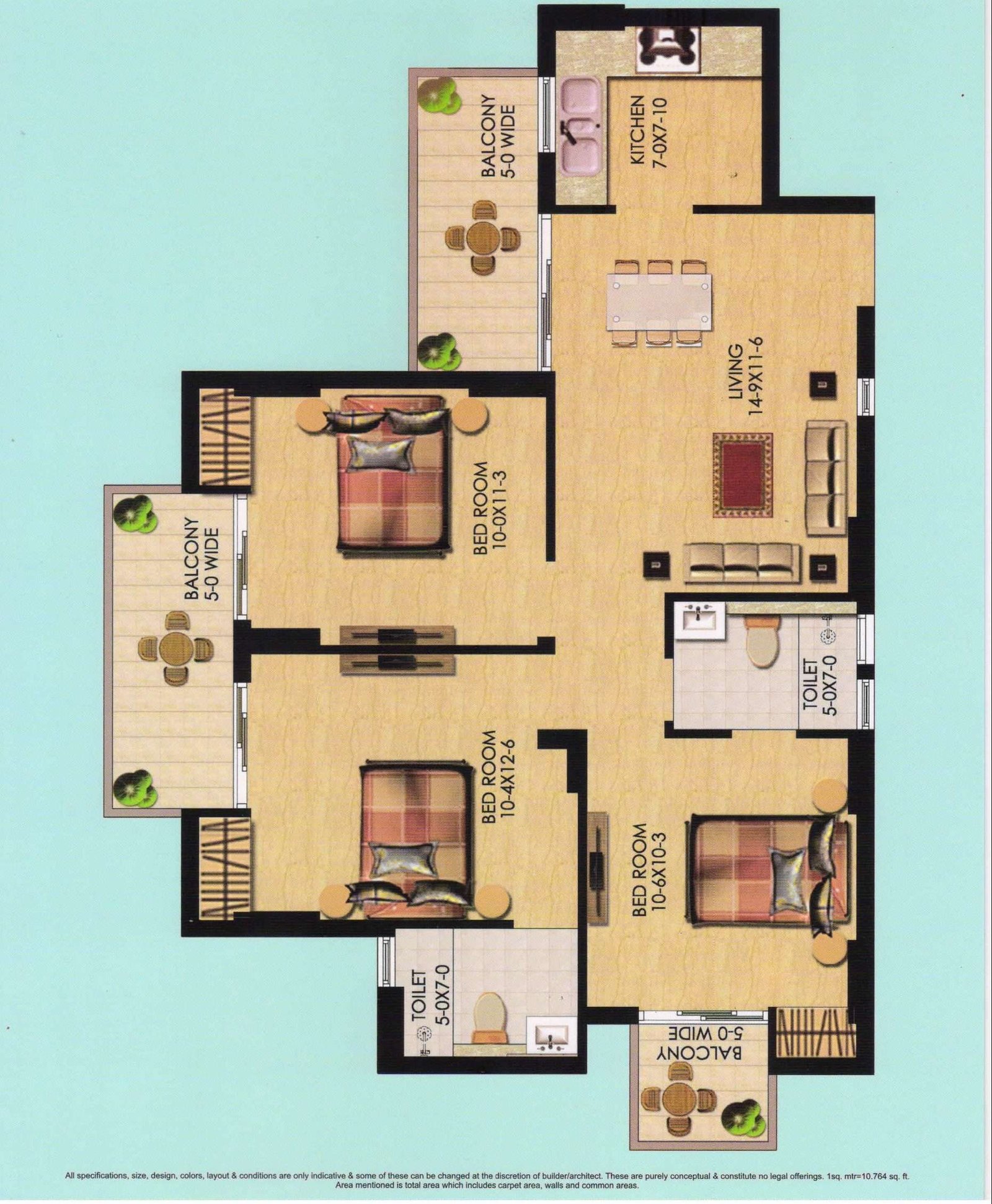 H3 tower – 3 BR + 2 Toilet residences on 24 floors